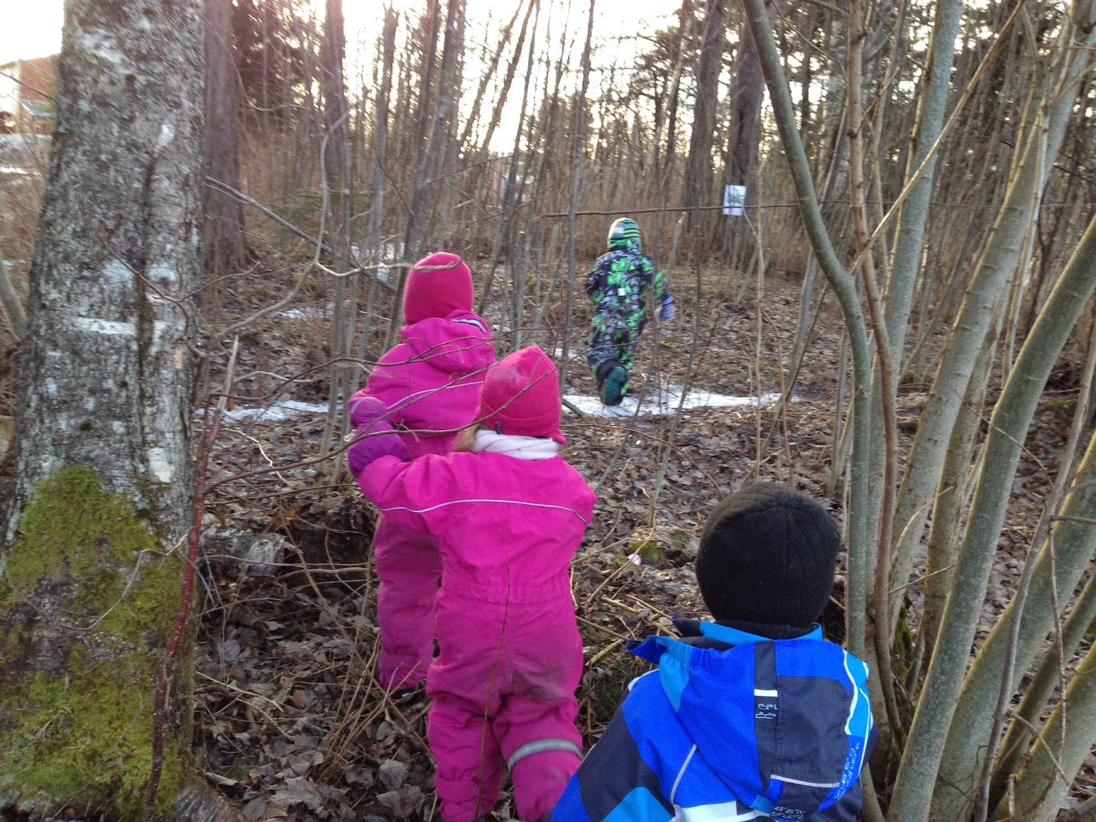 Så ble det natursti i skogen ved barnehagen. Veldig gøy å måtte lete etter poster for så å finne svarene på spørsmålene.